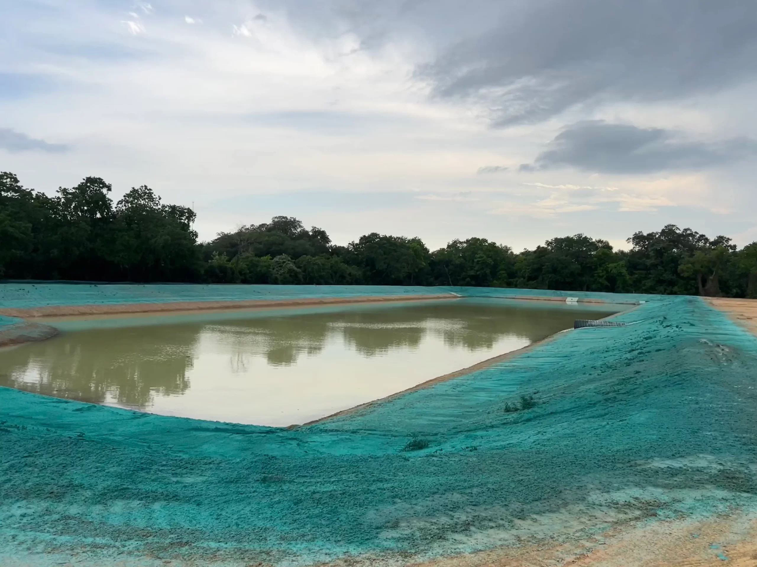 Hydroseeded swales, detention ponds, and outfall areas designed to slow runoff, filter sediment, and create permanent erosion resistance.